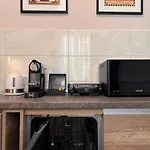Împreună cu facilități de autoservire, cum ar fi o bucătărie, acest apartament, oferă, de asemenea, o zonă de luat masa. De asemenea, această cazare pune la dispoziția oaspeților echipamente de preparate a ceaiului și a cafelei. La 8 minute de mers pe jos, oaspeții pot lua masa la Salus Fishpond și Bistro Luka. Oaspeții își pot îmbunătăți sejurul profitând de un jacuzzi și o saună. Accesul la tenis de masă îi ajută pe oaspeți să rămână activi în timpul călătoriei.